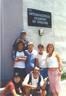 Meu alunos e eu, em frente a San Diego International Academy of English - San Diego, USA.